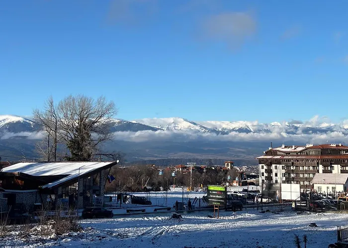 Ski-In Flat Next To Ski Road At Mountain View erbjuder ett utrustat kök, utrustat med ugn och diskmaskin. Busshållplatsen to Vihren Hut är belägen inom några kvarter från det här boendet. Lyxiga faciliteter som spabehandlingar och gemensam lounge garanterar en perfekt semester. Tillgången till inomhuspool garanterar en avkopplande vistelse.